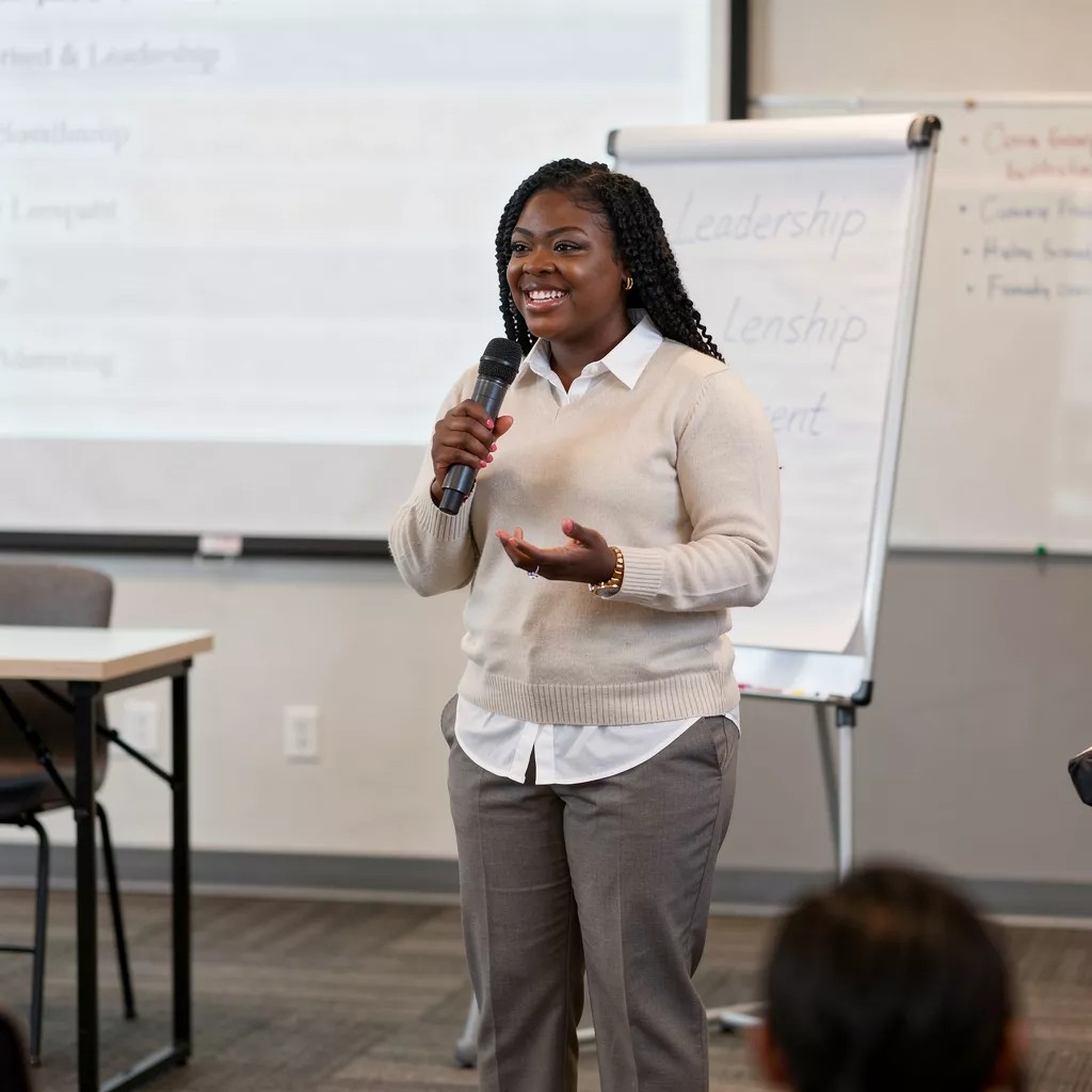 I’m Jasmine Avery — a public speaker, leadership facilitator, and coach with over a decade of experience helping people find their voice and lead with confidence. My journey began in 2012 through preaching, teaching, and facilitating programs in church and community spaces, and it has grown into a lifelong passion for communication and leadership development.